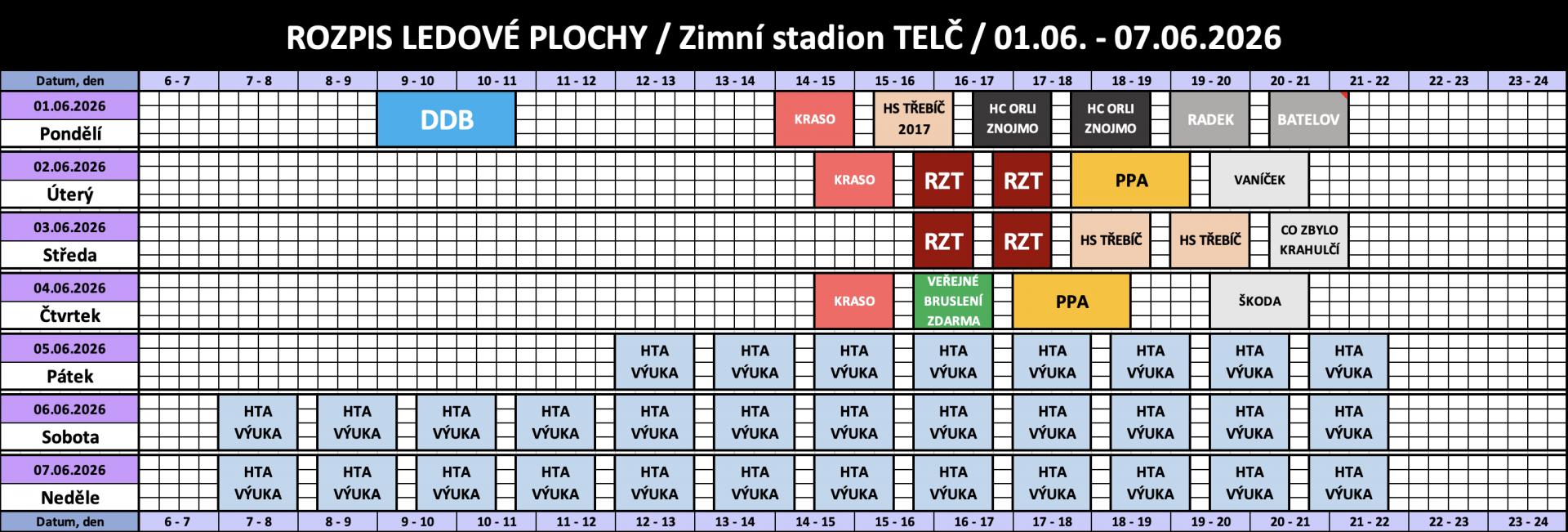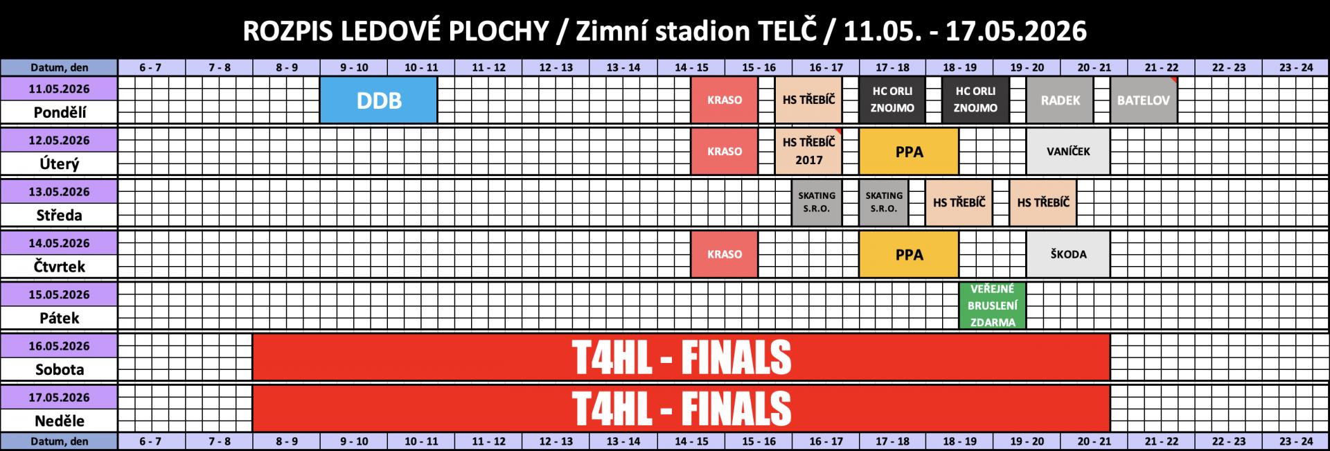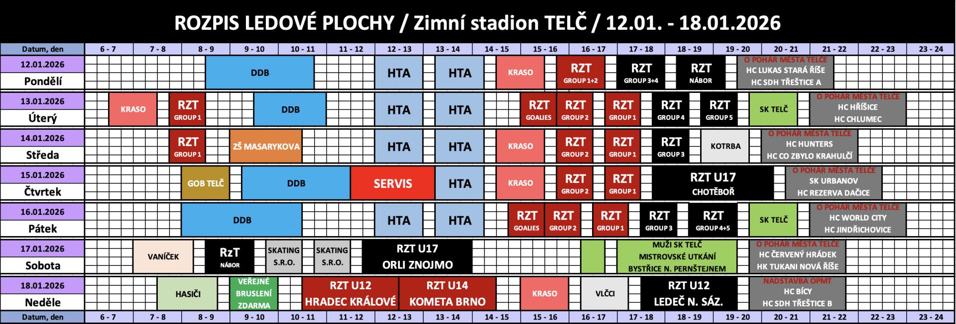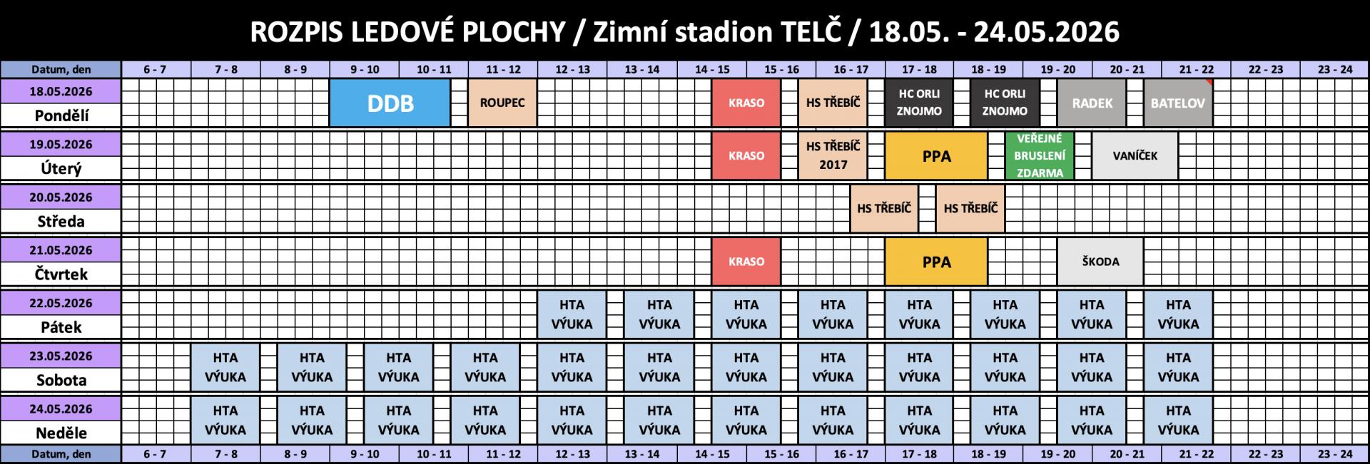 Rozpis obsazenosti a ceny pronájmu ledu
