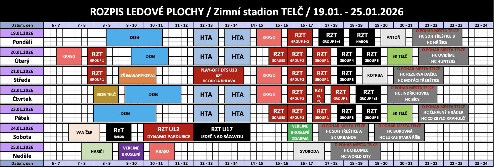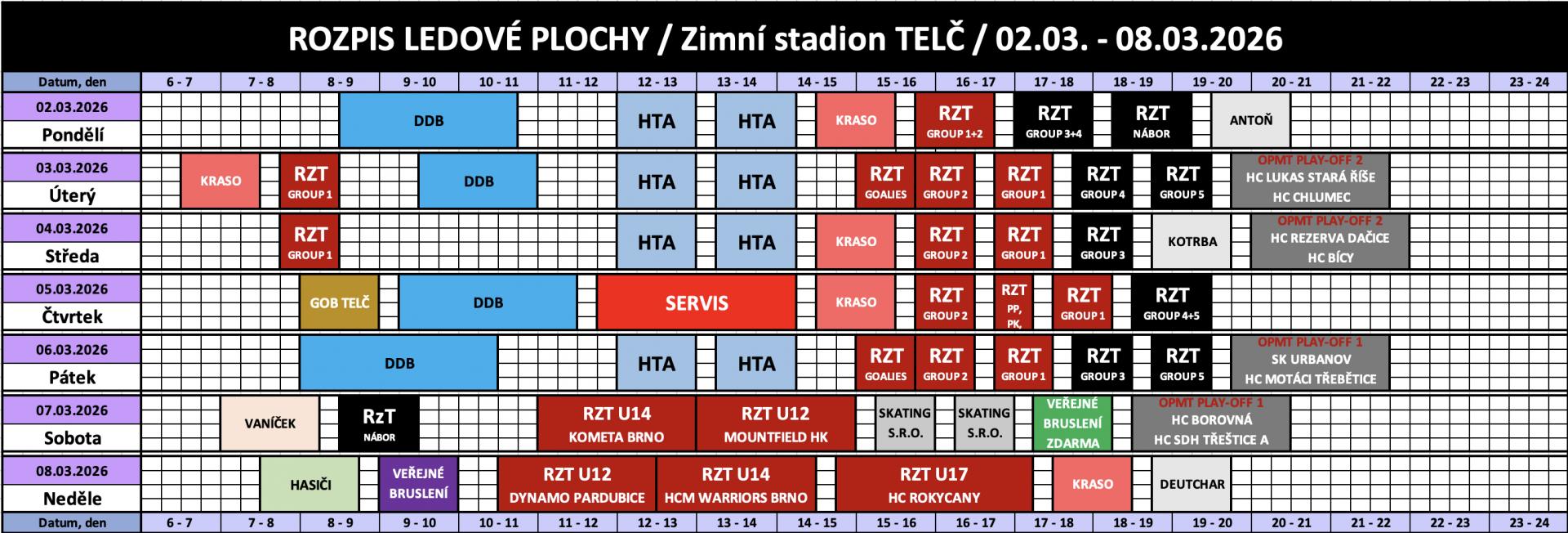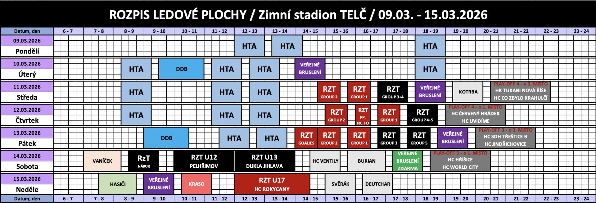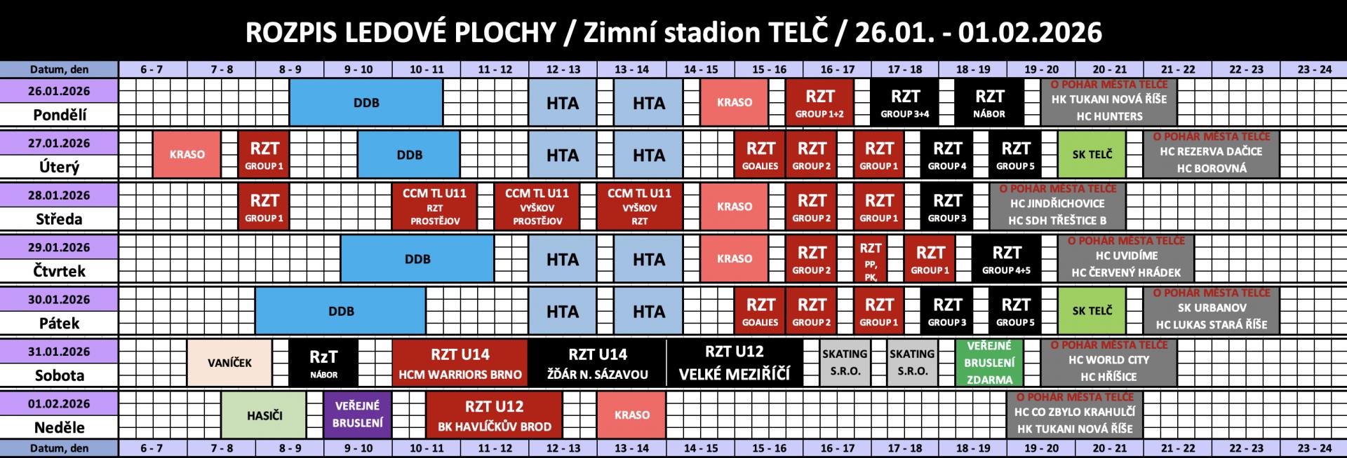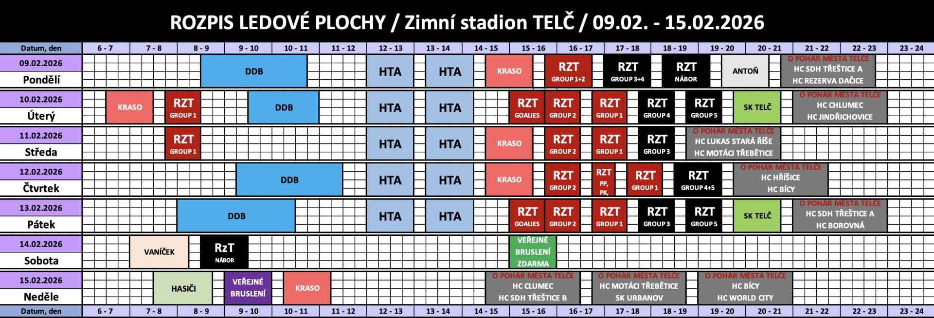 Rozpis obsazenosti a ceny pronájmu ledu