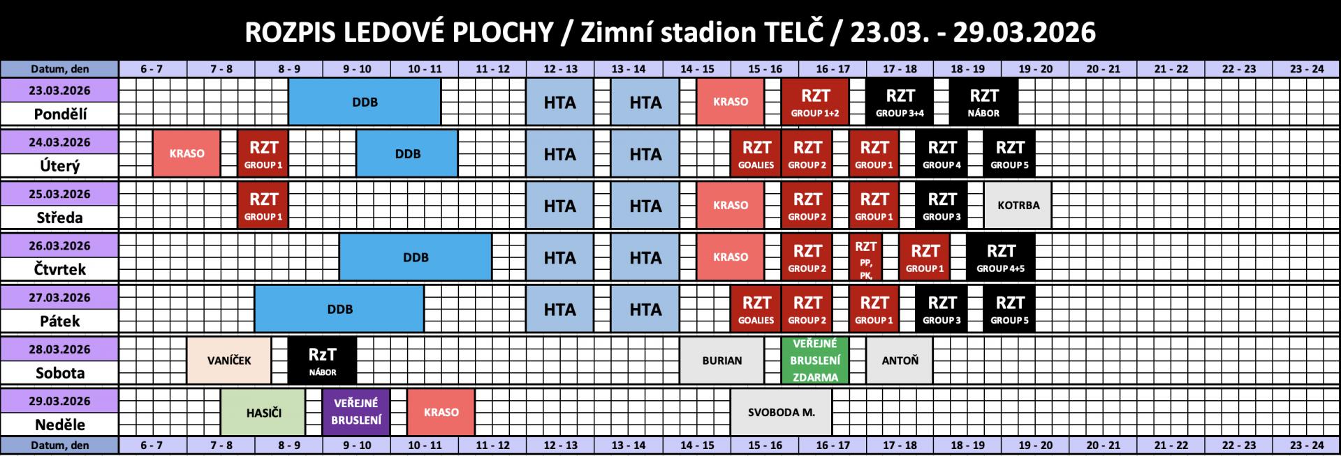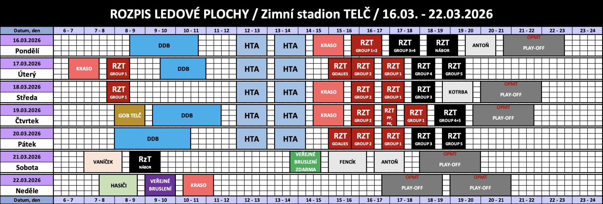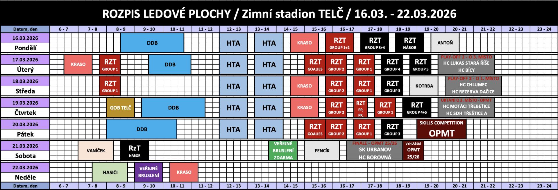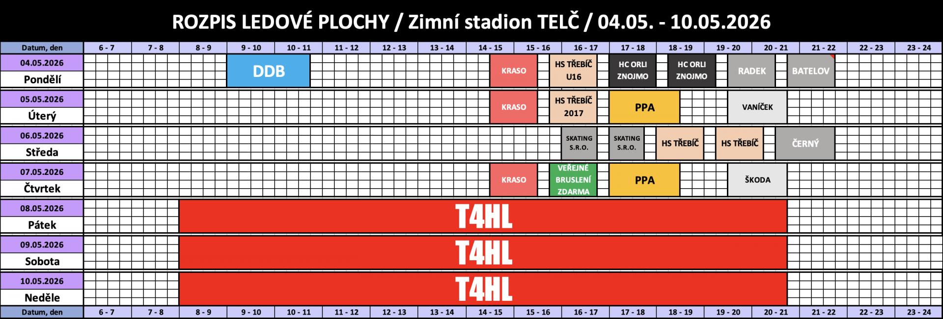 Rozpis obsazenosti a ceny pronájmu ledu