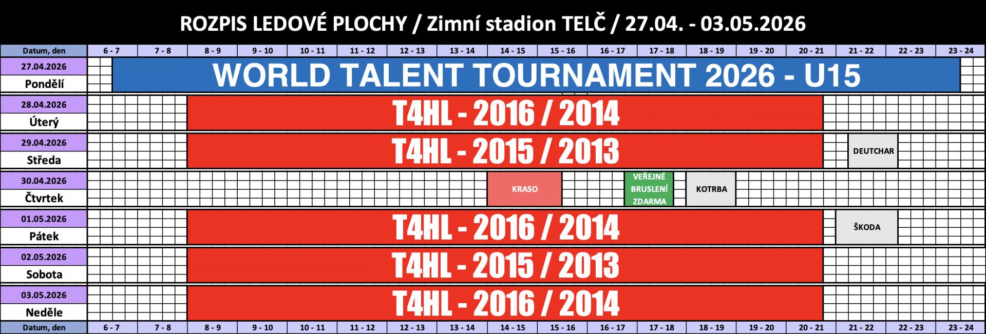 Nově vzniklá hokejová aréna Hockey Talent Center Telč s celoročním provozem je díky svému bohatému programu jedna z nejfrekventovanějších tréninkových hal v České republice, ale i Evropě. Ročně sem přijede tisíce návštěvníků - hráčů, rodičů, diváků za bohatým programem, který představuje zejména největší evropský hokejový projekt Hockey Talent Academy, který zde každoročně pořádá mezinárodní hokejový turnaj World Talent Tournament, což je jeden z největších mládežnických turnajů, kterého se každoročně účastní přes tisíc hráčů. V letních měsících ledovou plochu v Telči využívá i řada profesionálních hokejistů či týmů pro předsezónní soustředění. Je zde i bohatý program pro týmy z regionu, včetně několika úrovní amatérské hokejové ligy. Věříme, že případná prezentace Vaši úspěšné firmy v této nové frekventované hale by Vám mohla přinést řadu nových zákazníků, včetně ještě vyššího povědomí široké veřejnosti o Vaši činnosti. Pokud Vás nabídka zaujala a máte jakékoli další dotazy, rádi Vám je zodpovíme na e-mailu: pytlik@ferrax.eu, poté bychom si Vás dovolili kontaktovat a uděláme vše pro Vaši spokojenost.