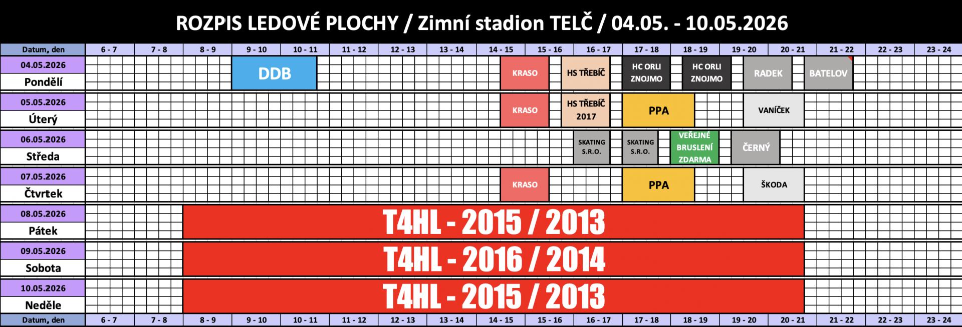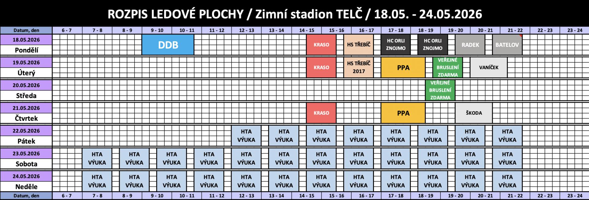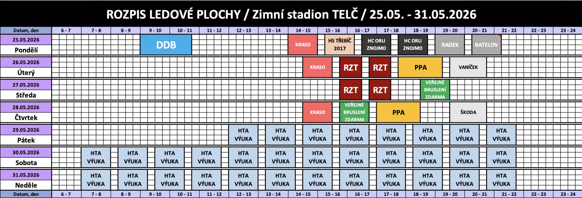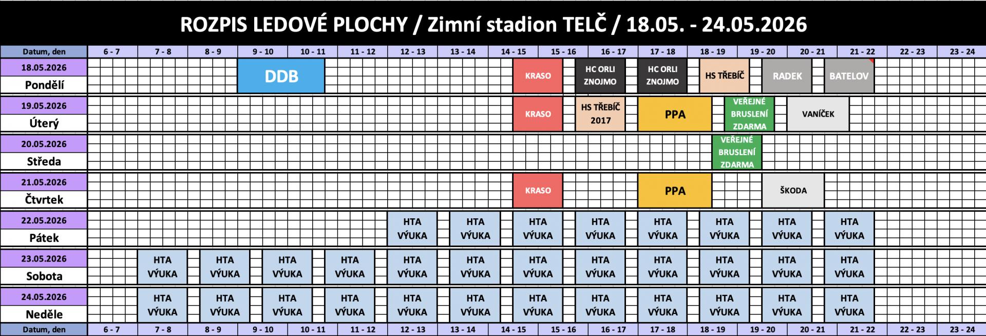 Rozpis obsazenosti a ceny pronájmu ledu